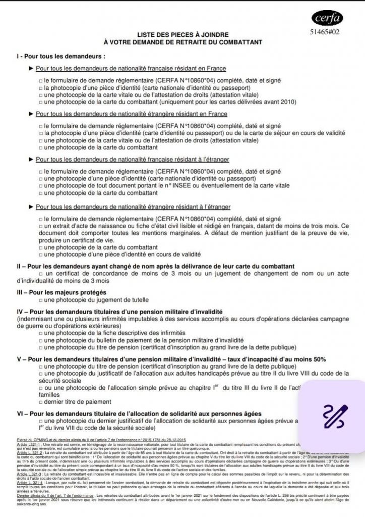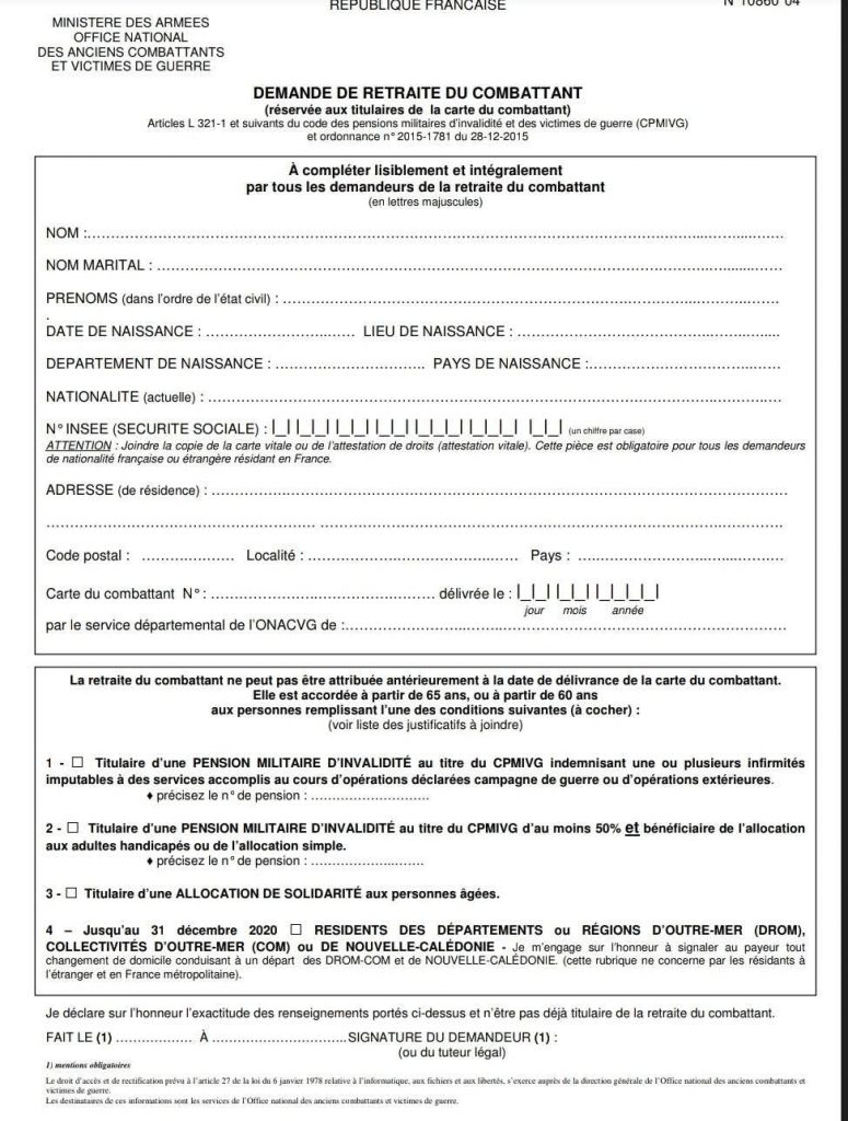 Pour bĂ©nĂ©ficier de cette allocation, votre proche doit impĂ©rativement ĂŞtre titulaire de la carte du combattant. Cette carte constitue le sĂ©same indispensable pour accĂ©der Ă l’ensemble des droits des anciens combattants.