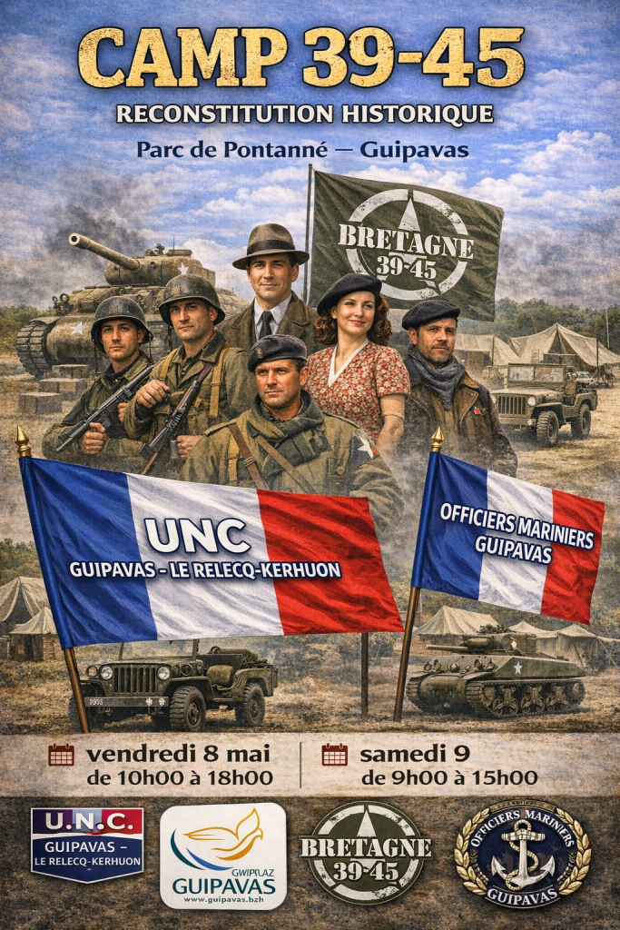🇫🇷 🇫🇷L’an dernier, dans le cadre du 80ᵉ anniversaire de la Libération de Guipavas, nous avions déjà envisagé, en collaboration avec Brest 44, l’installation d’un camp de reconstitution historique. Ce projet n’avait malheureusement pas pu se concrétiser, l’association étant déjà mobilisée à Gouesnou à la même période.🇫🇷🇫🇷